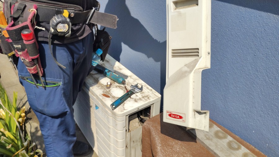 昨晩も、ホルモン屋さんでは、煙を効率良く排出するためにと、ほぼエアコンを切った状態での宴となりまして、満員の店内での熱狂(笑)も相まって過去最高温度&湿度(笑泣)を記録したコトとは思いますが、二次会カラオケのアトで、たこヨメアパートに帰り着きましたら、「そーいえば、ウチもエアコンが効かないんだったぁー!」と云うのを思い出し・・・ムシムシのまま今朝を迎えました。「♪はーやーくーこーいーこーいー、工事屋さん!」と6時からオモテで待っていたところ・・・