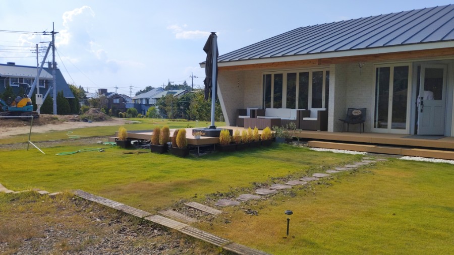 まー、そのアトで芝刈りの済んだ我が家の庭で過ごす夕方も有難い時間ですね。