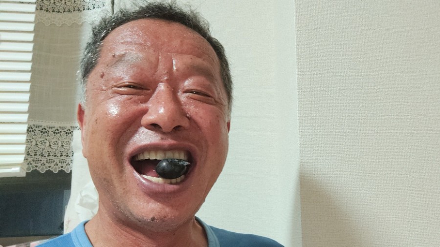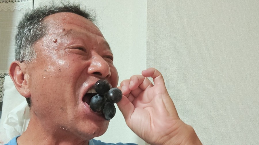 皮ごといけるブドウは左右の頬に2粒づつ文字通り頬ばるとそれはそれは幸せいっぱいです。