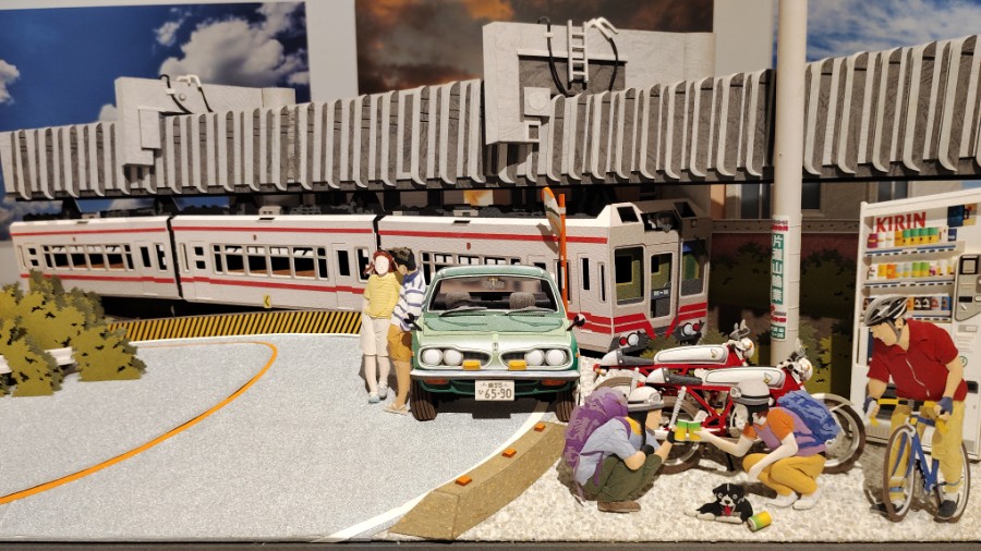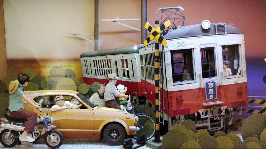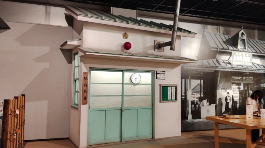 駅舎はモノクロ写真ですが、隣の派出所はリアルに再現。