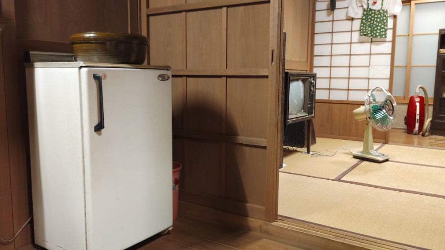 扇風機、電気掃除機、そして茶箪笥や化粧鏡もシブいセレクトですね。