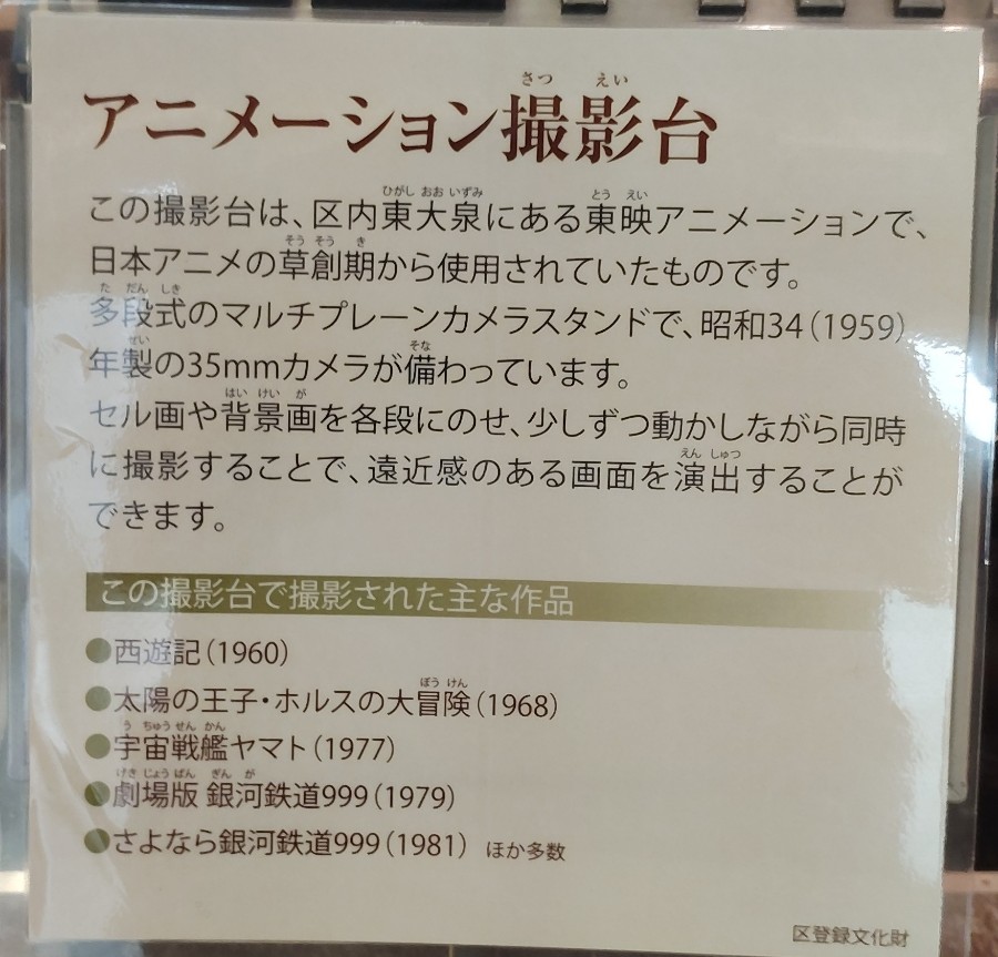 この台にセル画を一枚また一枚と載せ、コマ撮りを積み重ねると云うワケです。