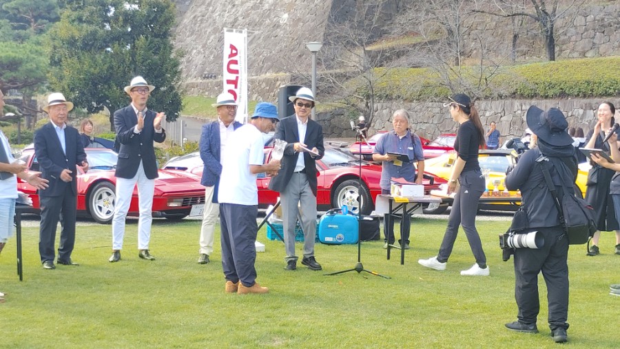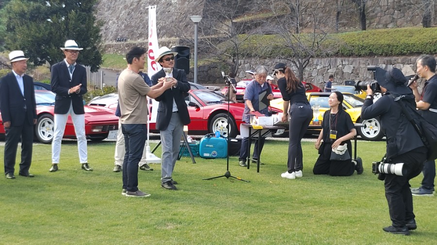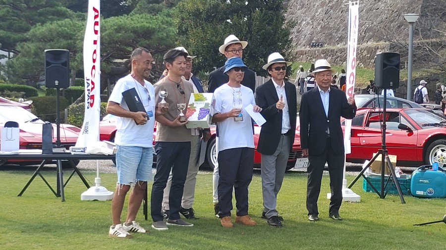 ↑・・・にしても、普段から『たこちゃんズ』を御守りくださる「八百万の神様」には、感謝しかございませんヨ。「コレが一番、経済的利益(笑)が大きそうだナ」と思ってた『(笹本健次社長の御実家で同氏が経営する)常磐ホテルのステーキハウス無料招待券(2人前:喜)』を、なんとイベント御参加者とギャラリーの全員が参加可能な(最もハードルが高い)ジャンケン大会に於きまして、たこヨメがオーバーオールウィンを獲得してしまい、コイツはスゴ過ぎるナと思いました。マイクロ・デポの元顧客で午前中にワタシを訪ねてくださった「世田谷のS」さん(マセラティにも戻って来てね:笑)のディーノ208GT4は、二つのプライズを獲得するしでイイコト尽くめ。清水先生とワタシのコンクールでの見立ては、悉く合ってるしで、15時の散会まで(クルマイベントぎらいのワタシにしては珍しく)楽しみ切るコトが出来ました。清水先生を始めとして、H井編集長さま、そして笹本健次大社長さまにも、心からの感謝をお伝え申し上げます。また、フェラーリカリフォルニアスパイダーで御参加(アトで「Sm」さんから伺いました)されていた「流山のS」さんには、お帰りの時に会釈ダケで失礼をばいたしました。さらに「Sm」さんのマセラティビトゥルボEは玄人受けするらしく、ギャラリーの方々は元より、とりわけ審査員さん方が注目なさってたのが印象的でした。こうした温かい関係者各位のおかげさまで、たこちゃんズは初めての甲府を堪能出来ました。皆さん、本当に有難うございました!