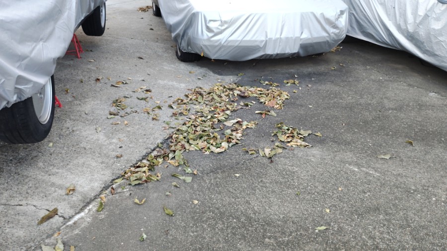 ・・・「♪枯れ葉よー、枯れ葉よー、枯れ葉よぉ」って、この有名なシャンソンはこんなにも内容の無い歌詞だったっけか(笑)。とにかくメカトリエに戻ってみたら、またまた隣の雑木林から舞い落ちる枯れ葉がそこかしこに吹き溜まっておりまして、留守中には相当強い風が吹き荒れていたのを物語っておりました。まったく、「枯れ葉よぉ・・・」