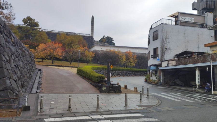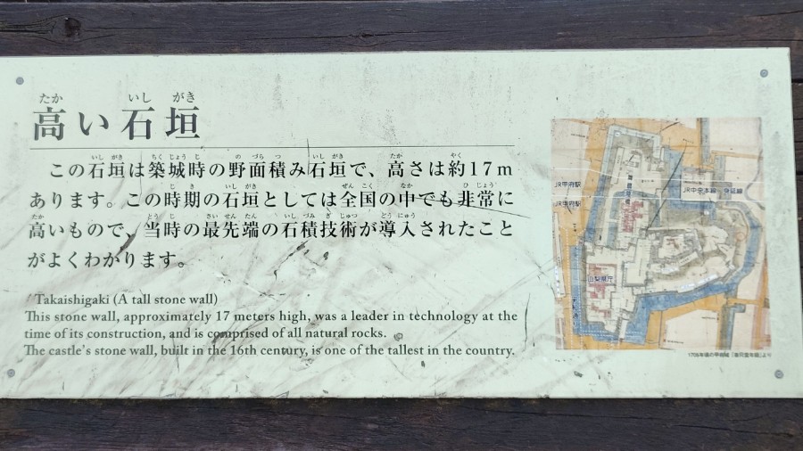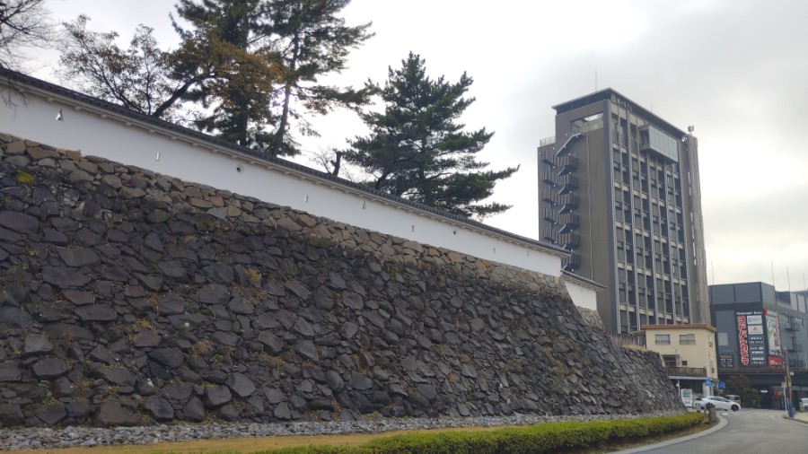 駐車場にクルマを停め、甲府城の石垣を眺めつつ歩きましょう。