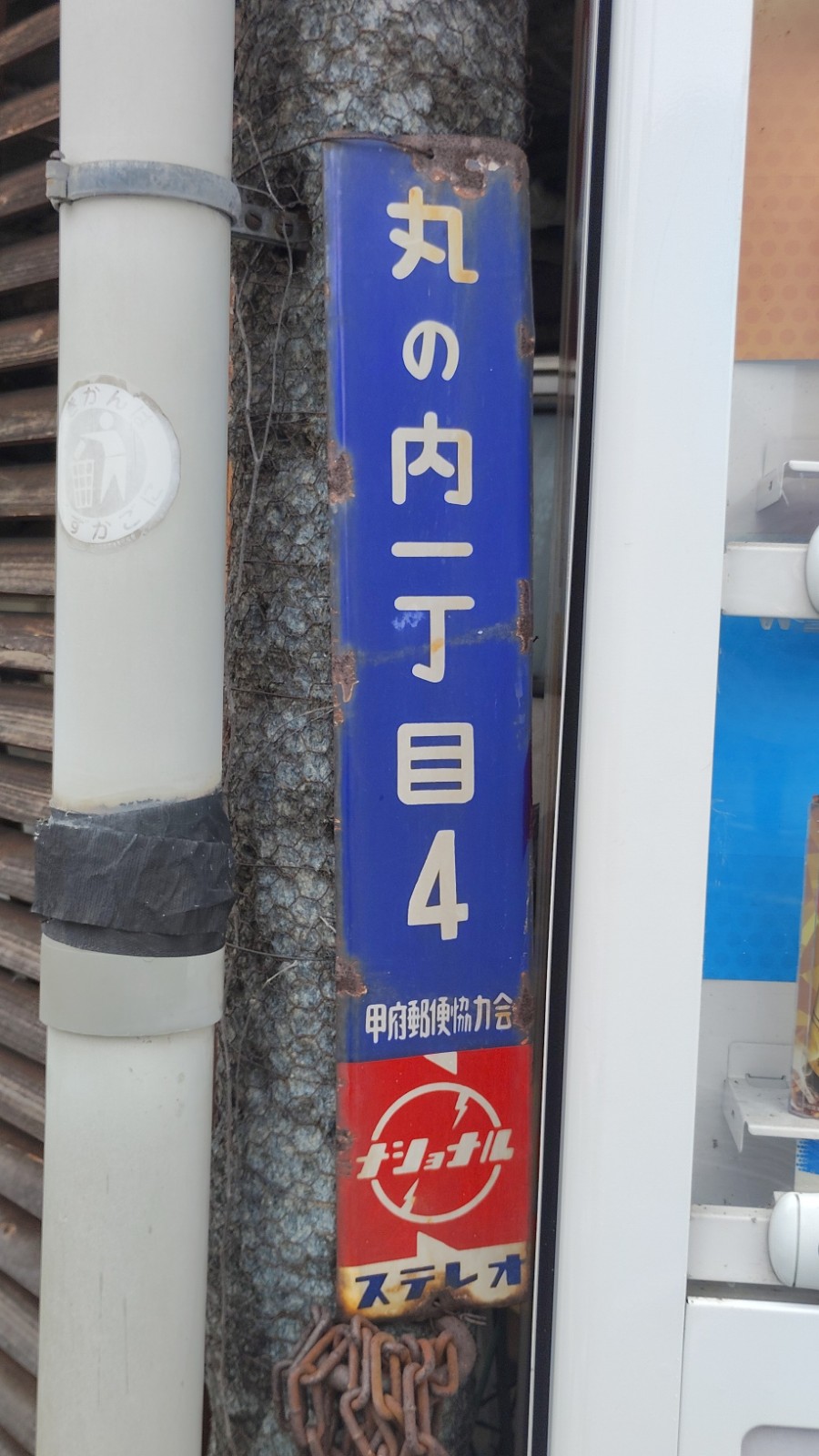 自動販売機のヨコに貼ってある住居表示板がホーロー製の昭和30年代モノ!