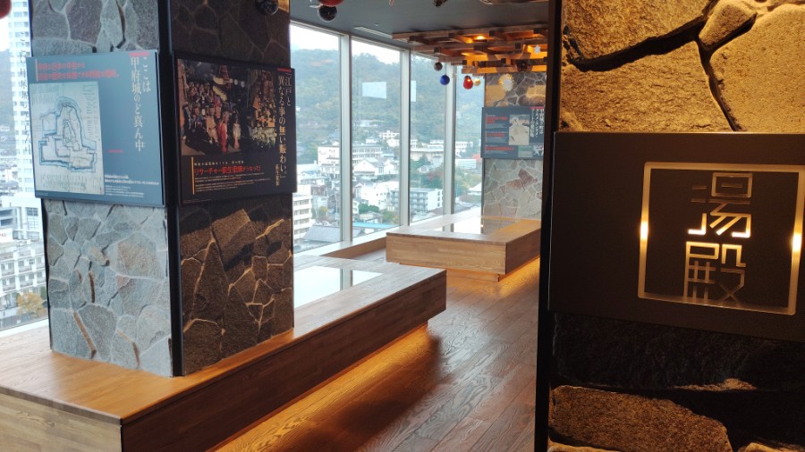 まずは空いてるウチに、13階の展望温泉風呂で温まっておきますかナ・・・