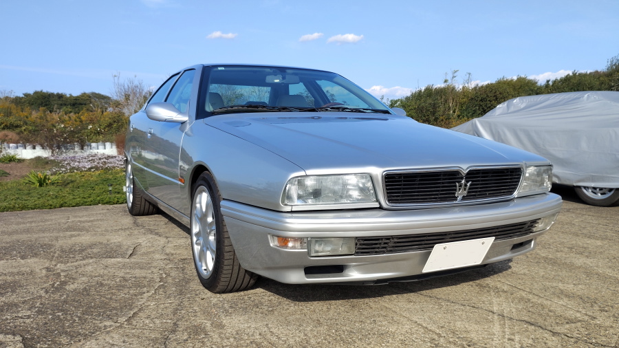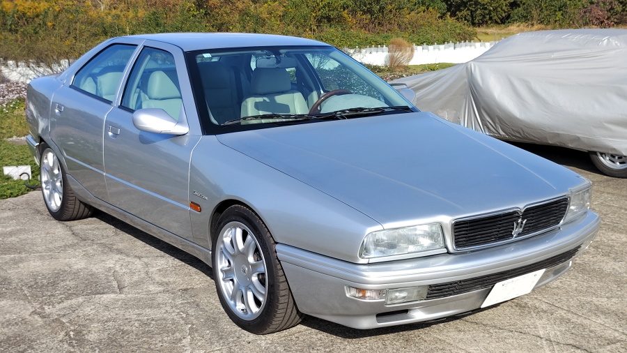 秋も深まってまいりました。そんな季節に相応しいシックなセンスを湛えた内外装色の組み合わせを持つマセラティクアトロポルテⅣ V6エヴォルツィオーネが入荷いたしましたので、御案内いたしましょうね。
