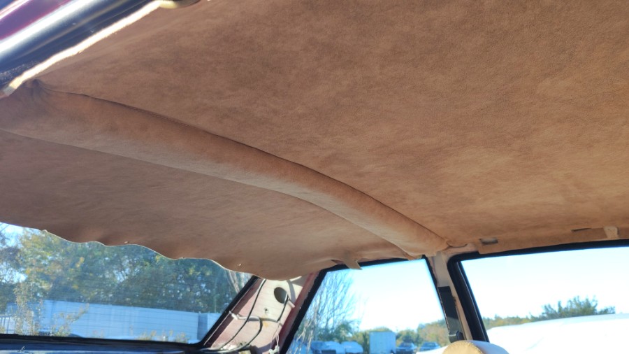 オモテは無風で、ようやく好機到来。ルーフライニングの接着作業を完遂。