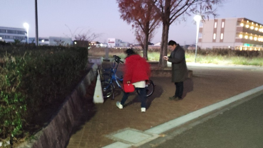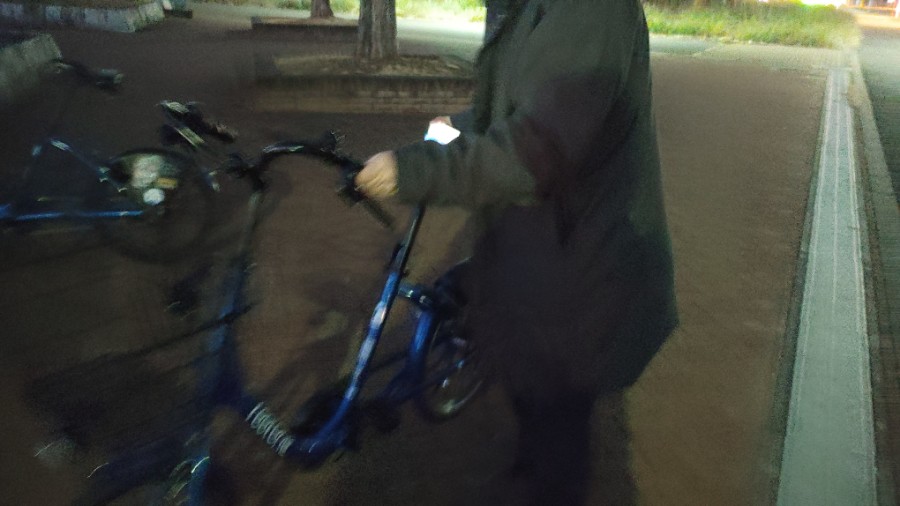 「ハァハァハァ・・・」ようやく基地の自転車置き場に到着して「はい、ポーズ!」