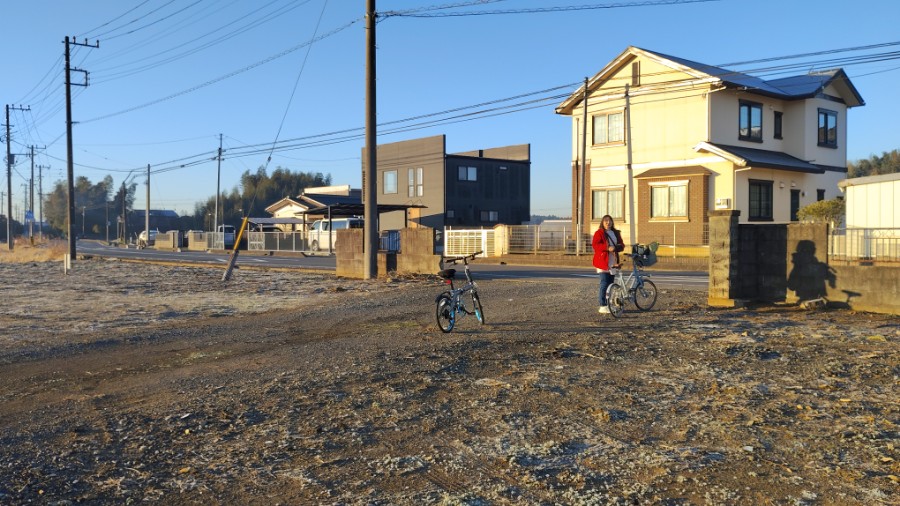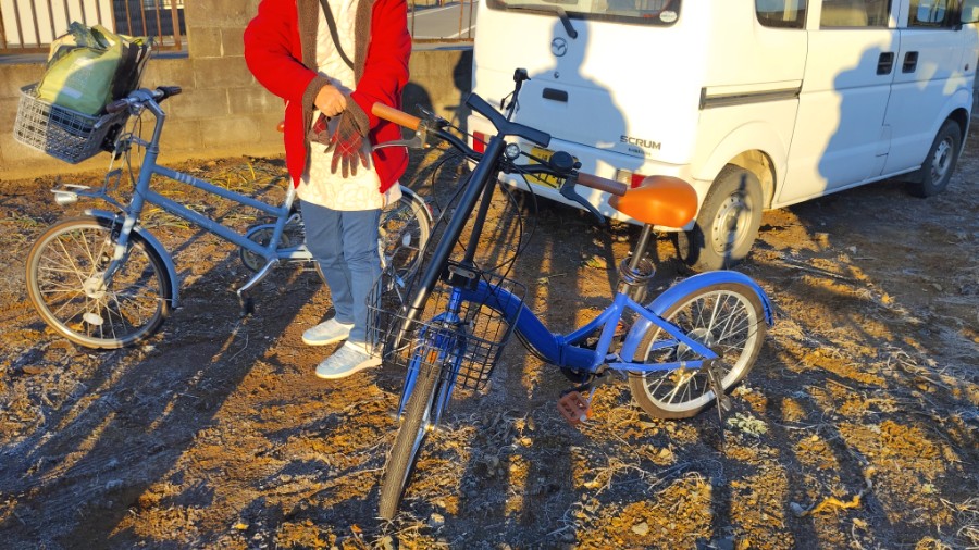 たこヨメは愛用のチャリ。ワタシは一年前に手に入れた『ちゅうかな折り畳み』で。