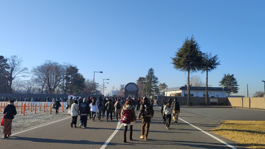 そろそろ場内に入らねば・・・アレ?!いきなり持ち物検査があるらしい。