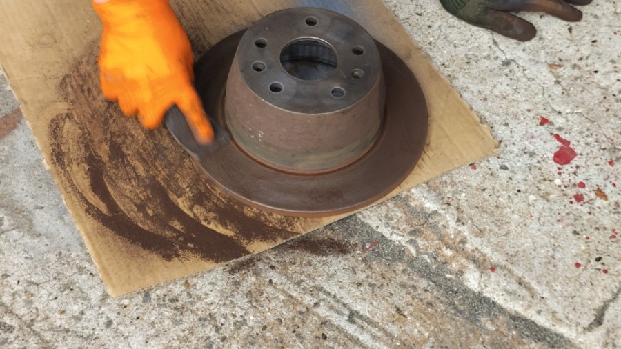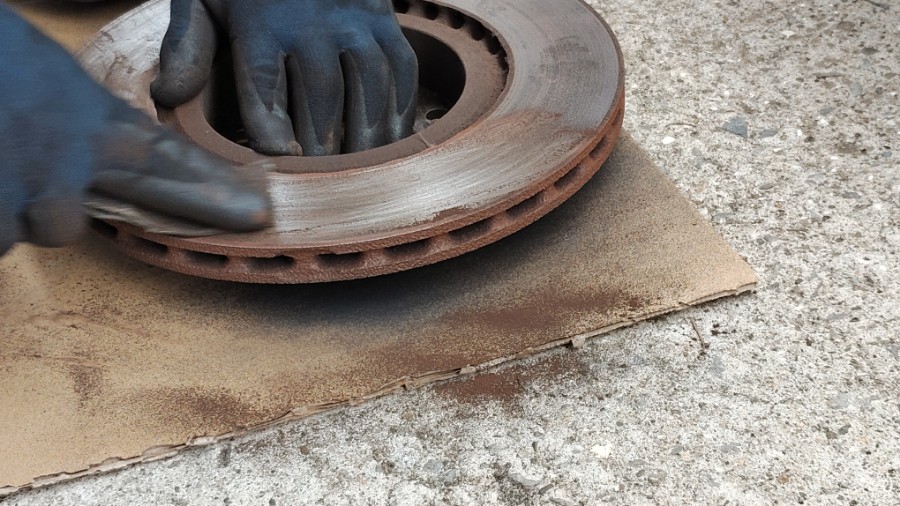 既に研磨済だったブレーキローターに湧いちゃったサビを丁寧に除去する作業から。