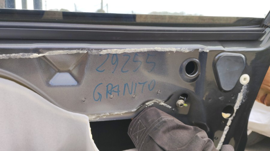 ・・・「坂戸市のM」さん号のデント作業を開始。あ、カラーコードがメモってある。