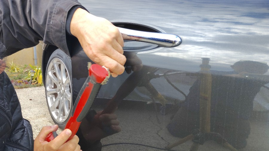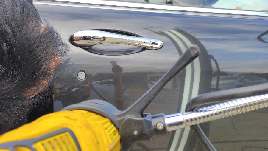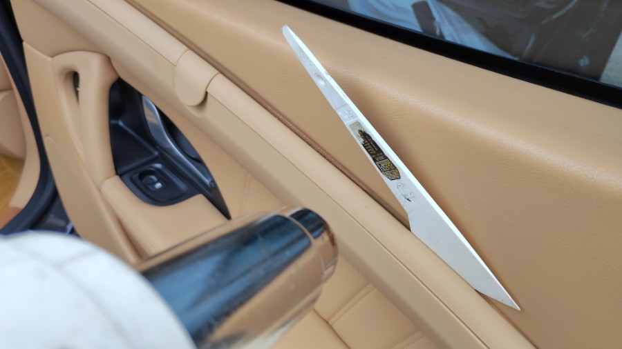 反対側のリアドアトリムも同様に熱しつつ、樹脂ベラを入れましたら・・・