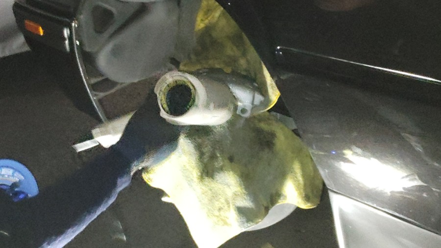 続いて、キーシリンダーの9センチ前方で4センチ上方の凹みが二箇所目・・・