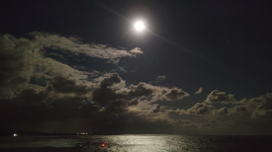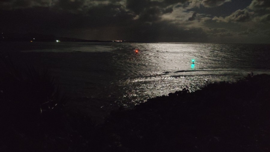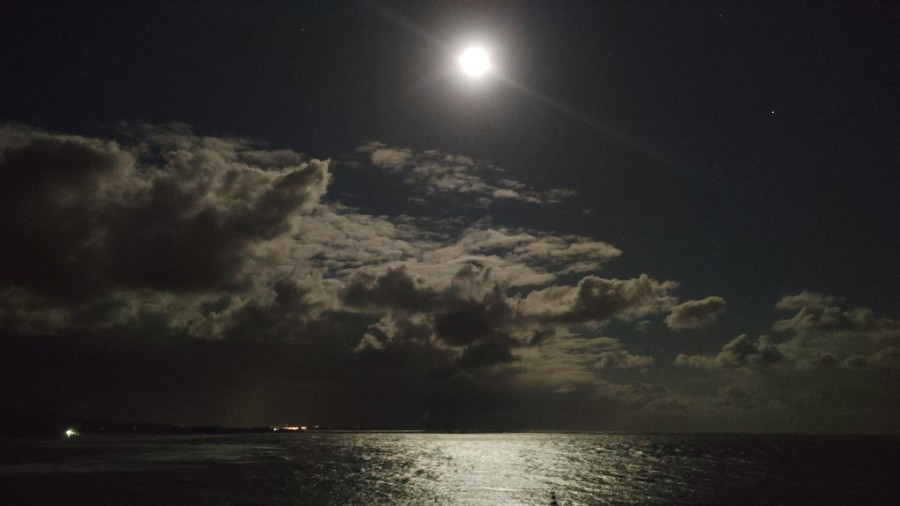 丑三つ時の海を照らすほぼ満月の景色が幻想的で。