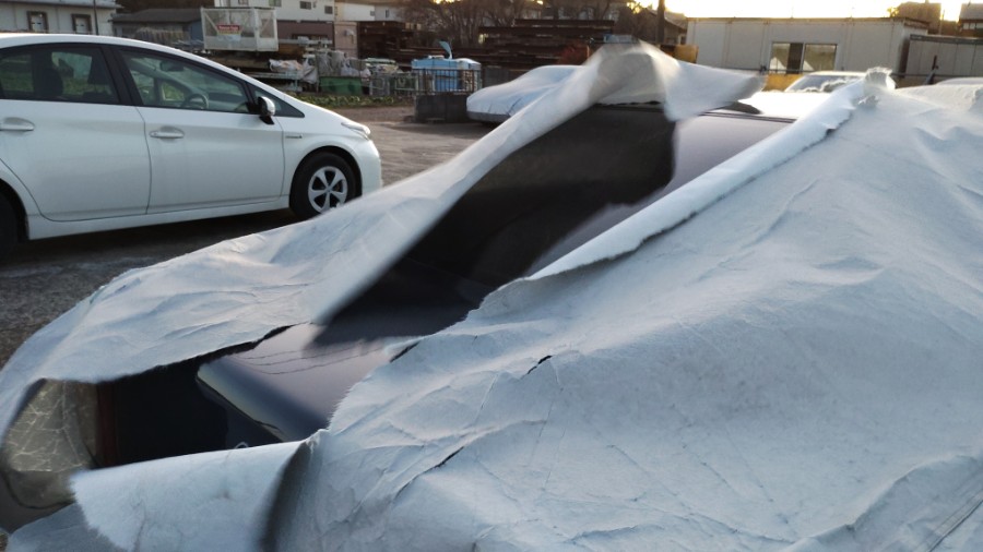 筑波の風は、ボディカバーを引き裂いてしまったとは。