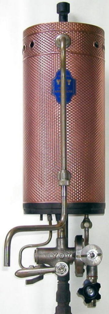 あの~、パーツクリーナーとかキャブレタークリーナーって油ヨゴレ除去用スプレーを多用するコトが多いワタシたちなんですが、そうで無くとも指先がシモヤケになりそな昨今、アノ手のチョー揮発性の高い溶剤って、指先に付くと(ディスポーザブルな手袋を3枚重ねにしていても)さらにさらに急冷してくれますんで、夕方ともなりますと、とりあえず「チョェ~!!」って感じになりやす。アパートに帰って来て手を洗う時、チョイとスイッチを入れるダケでシャワーの温水が蛇口から出てくるのは、悴んだ指先にとっての至福の時を呼び込んでくれますね。「ガス瞬間湯沸器ってスゴい発明だよなー、やっぱアメリカ人が発明したのかナ・・・」「きっとアメリカ人じゃないと思うわヨ。そんなのアメリカで見たコト無いモン。アメリカはセントラルヒーティングよ!」「ホンじゃ日本人なのかナァ・・・グーグル先生に伺ってみよー!」