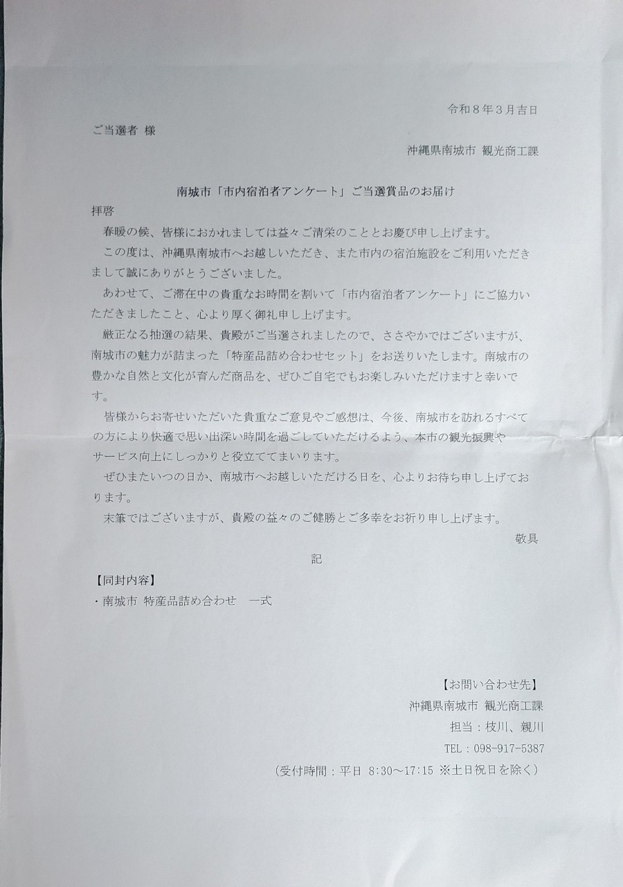一品一品、沖縄らしい景品ですね。