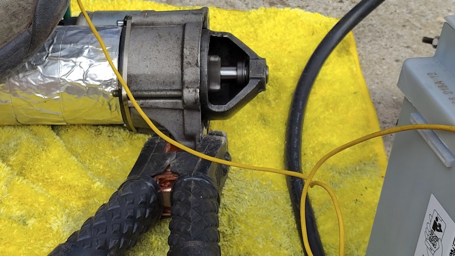 ハズしたスターターモーターを直結すると、フツーに回っちゃいます。アレ?!
